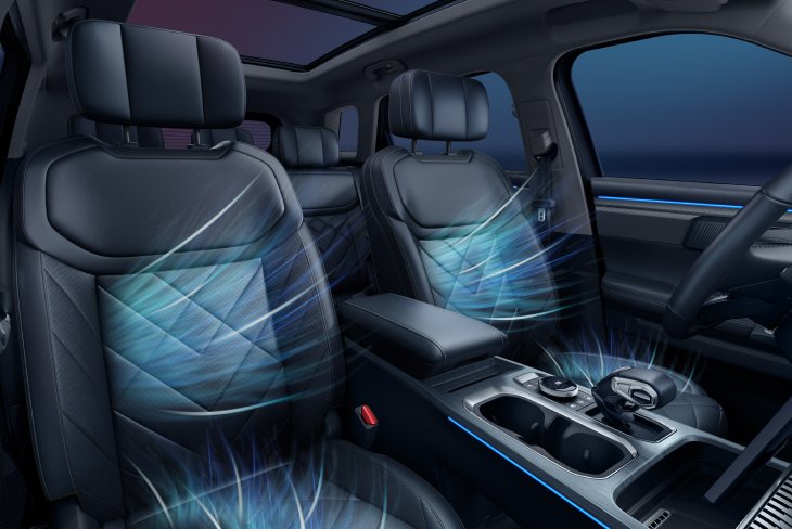 Przestronne wnętrze z nowoczesnym wykończeniem oferuje niezrównany komfort podróży, łącząc wyjątkową funkcjonalność z zaawansowaną technologią.